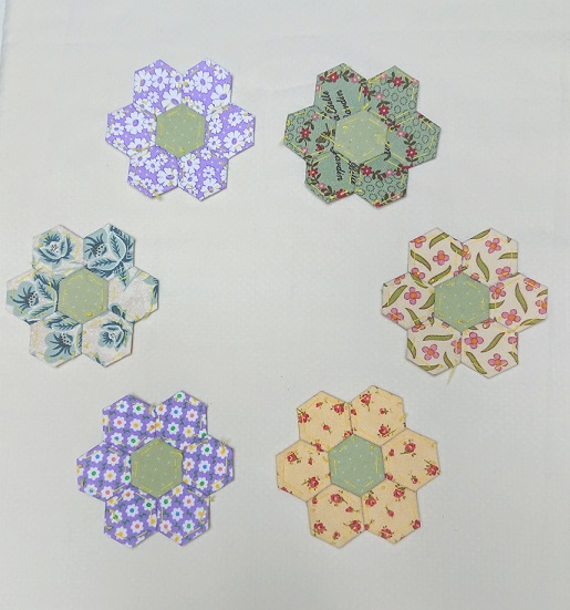 なのであきらめて、前につないだヘキサゴンフラワーを出してきて並べて見ていました。