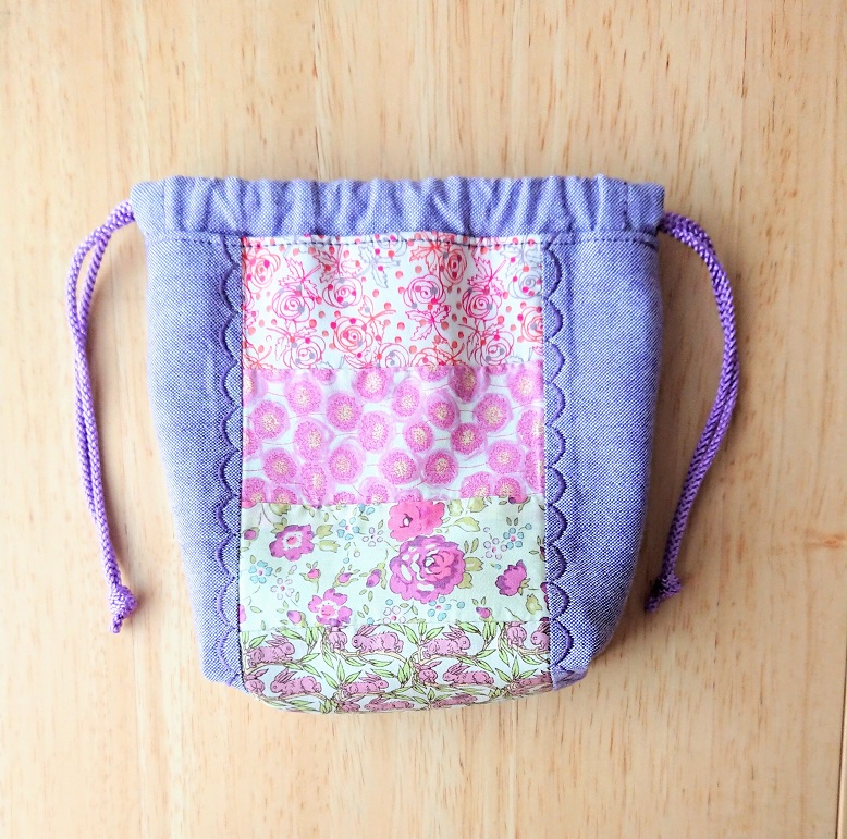 リバティのパッチワーク巾着です。