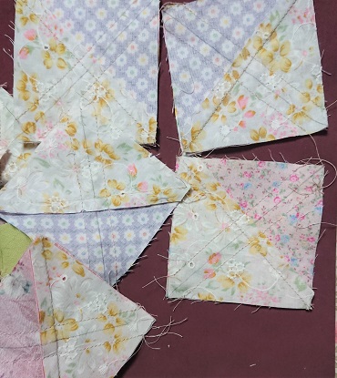 2021-01-15 砂時計のパターン パッチワークでワイヤーポーチを作りたいのです。 タンブラーのパターンのトップが完成したので、 前から縫ってみたかった砂時計のパターンを製作中です。 ミシンでつないで、カットして・・ 爪アイロン♪ そして、アイロンで押さえます(*^^*) 真ん中がキレイにぴったり合っているのを見るとストレス解消になりますし、 作業に集中している間は心配事が消えます。 砂時計のパターン、どんどん増えそう・・・⌛